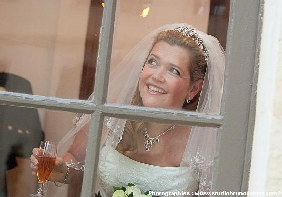 pour saluer Evelyne Thereau, la directrice, alors qu’elle faisait visiter le Chateau à deux futurs mariés … Andrea et James !….