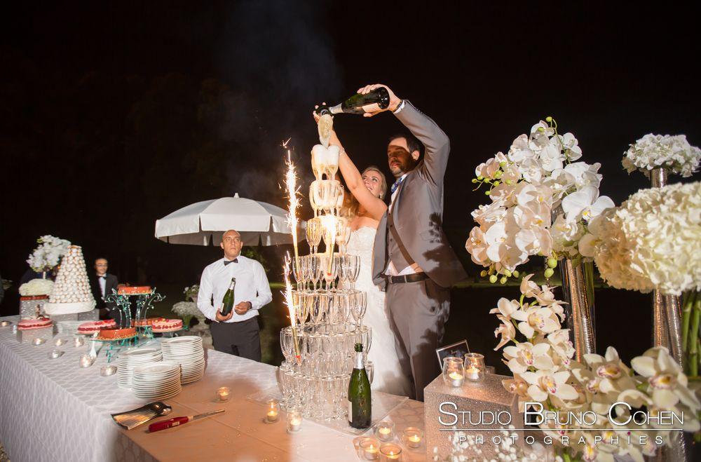Les mariés ont eu le droit à un diaporama, une pyramide de champagne et un feu d’artifice pour clôturer cette journée.