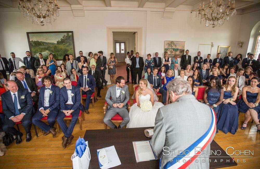 Ensuite, nous avons pris la direction de la mairie de Bry sur Marne. Sa grande salle a permis d’accueillir les 150 invités. A la sortie de mairie, les invités ont lancé des milliers de cotillons pour fêter l’union de nos mariés.